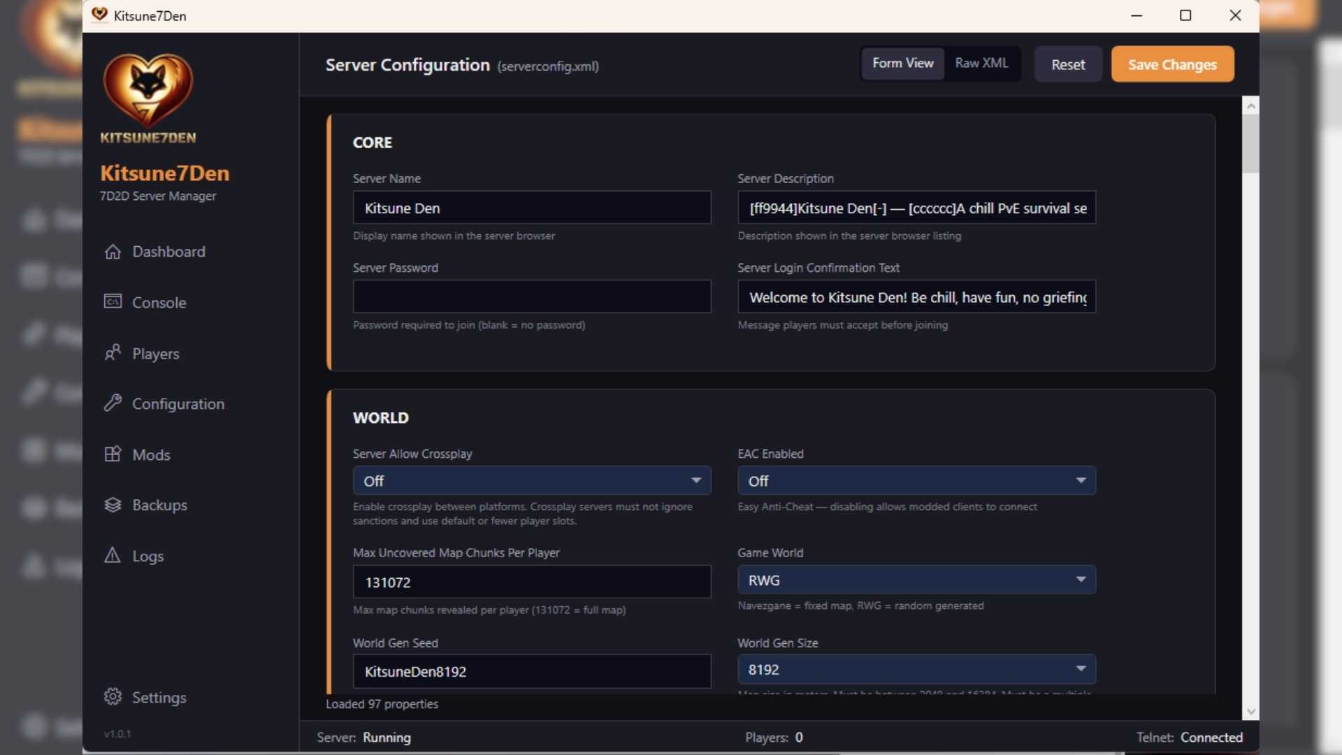 - Config Protection -- Automatically backs up serverconfig.xml before Steam updates, restores after